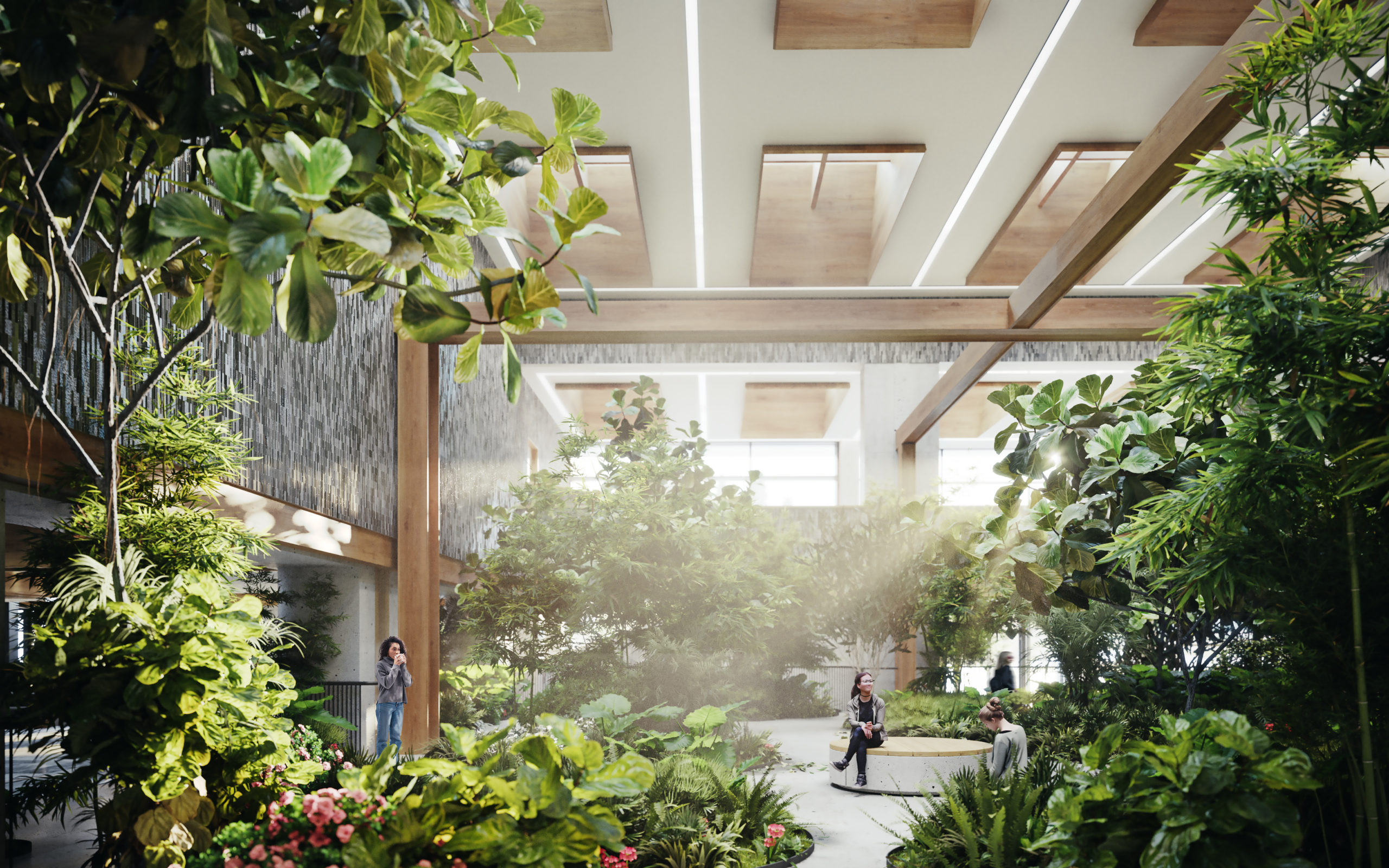 There is also a recreation area with a winter garden and an artificial pond. The abundance of natural light combined with the natural motif creates a real oasis for students to relax.