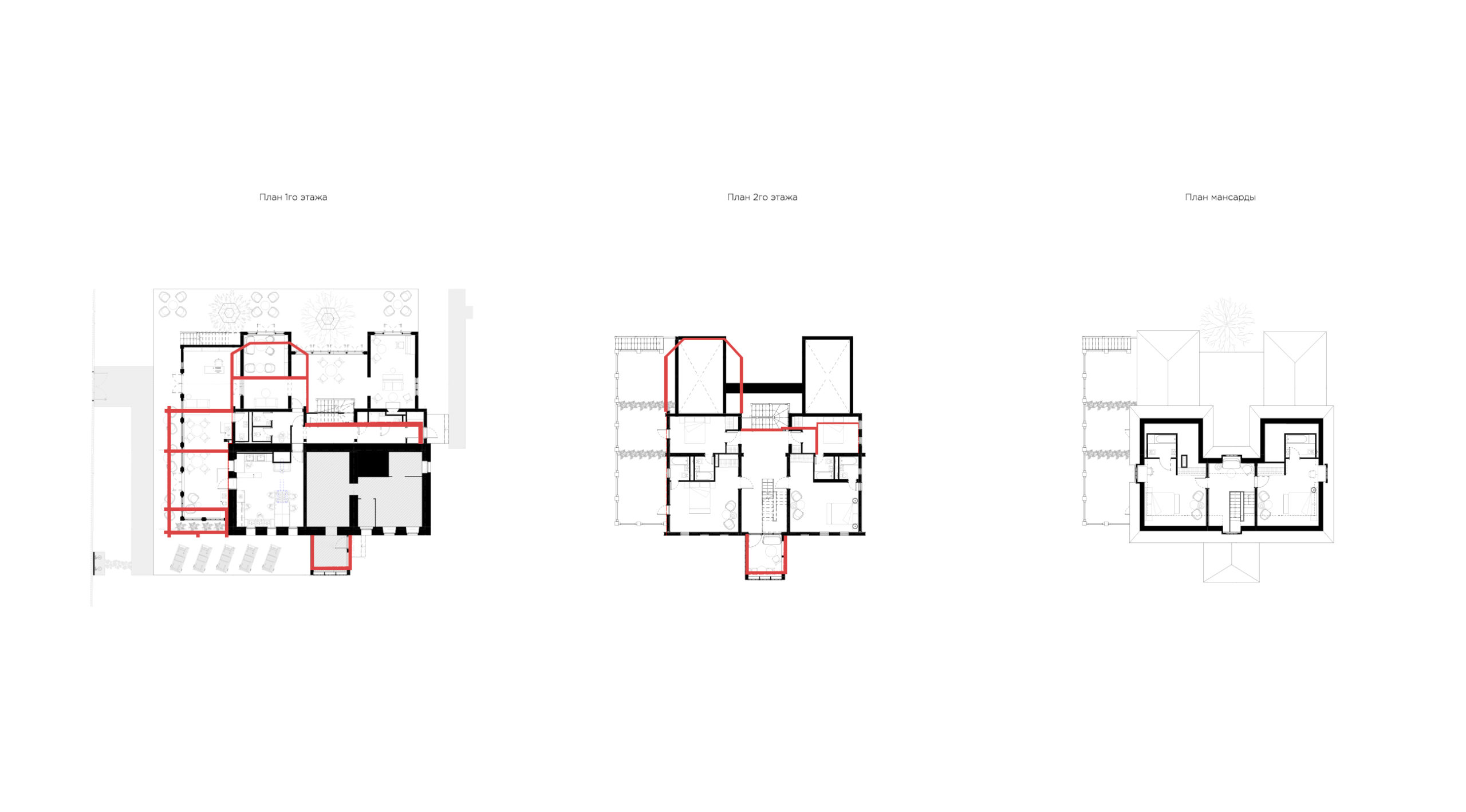 Поэтажные планы реконструкции самого дома: