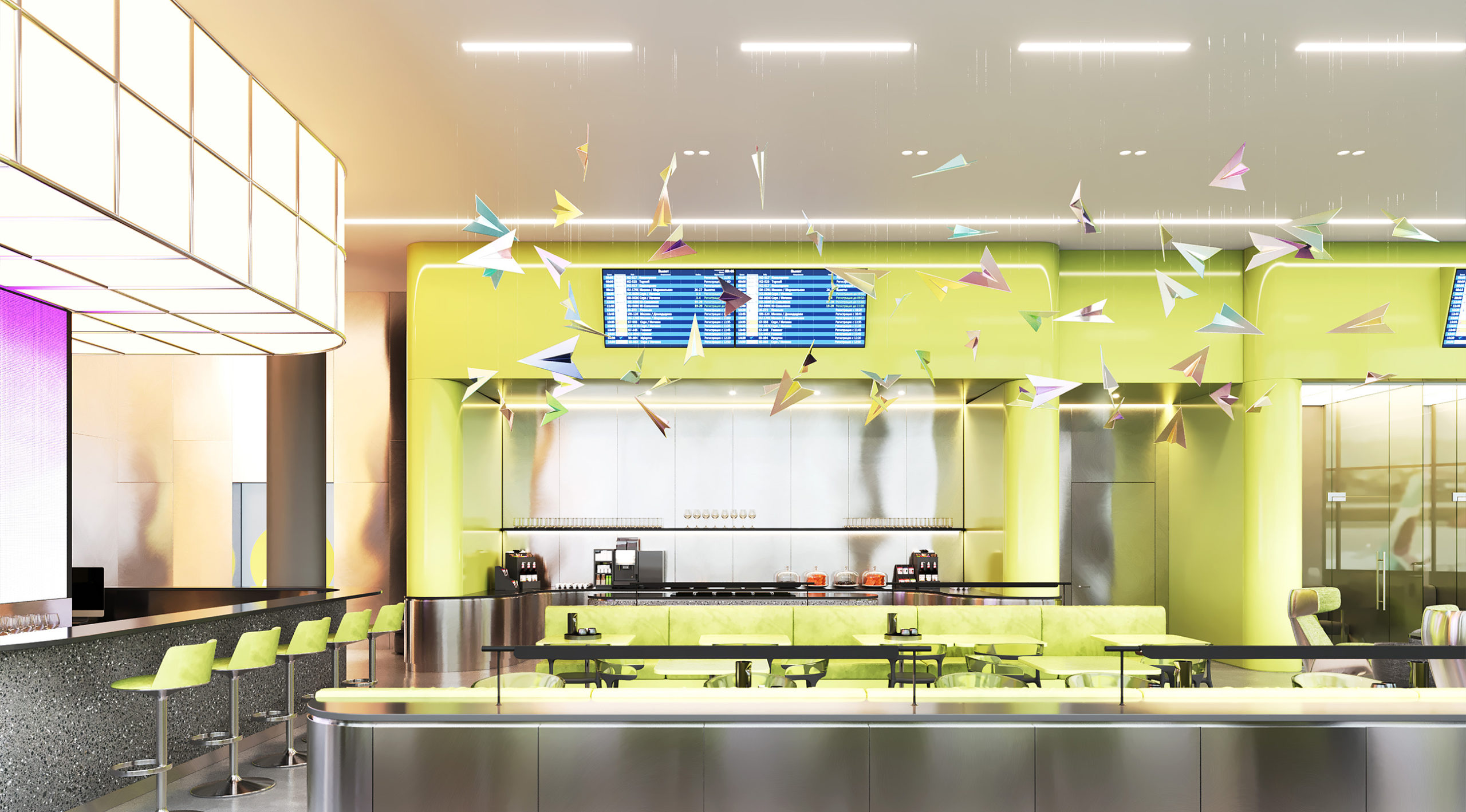 Основой для концепции дизайна интерьера бизнес-лаундж зоны S7, вокруг которой построено все пространство, стал брендовый зеленый цвет.