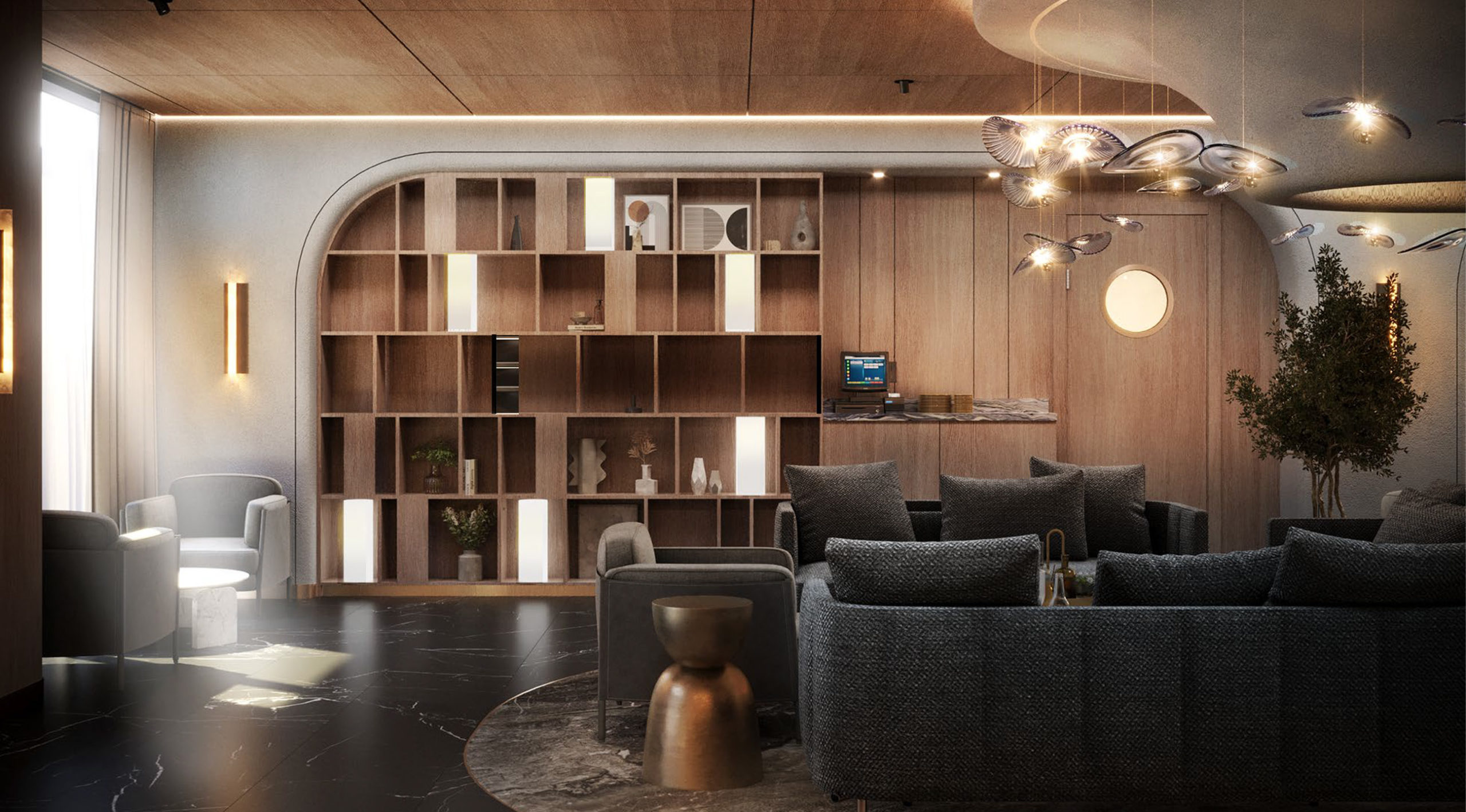 Лобби второго этажа является продолжением лобби первого. В этой зоне использованы все те же принципы отделки и зонирования.